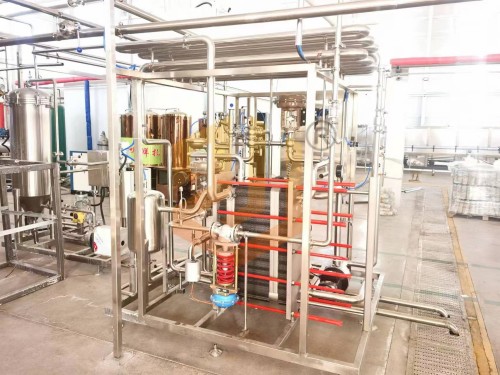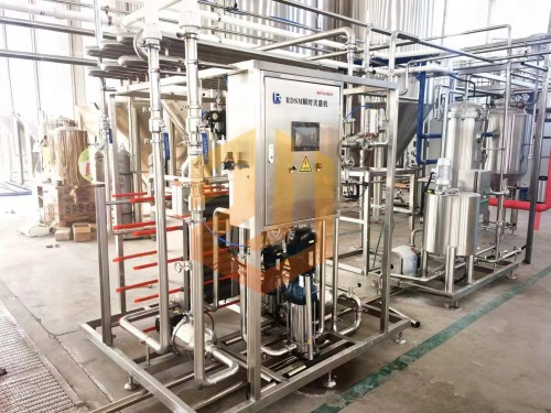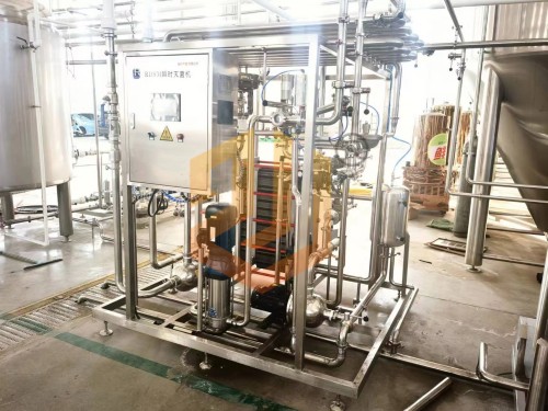 啤酒殺菌時(shí)利用高壓啤酒泵送入二段式板式換熱器預(yù)熱段,與已完成殺菌的熱啤酒預(yù)加熱至62℃左右,再經(jīng)過(guò)高溫保溫段用85℃的熱水將啤酒加熱到78℃,在保溫管段保溫30秒后達(dá)到巴氏殺菌單位25pu值,然后再被預(yù)熱的冷啤酒降溫至4℃,進(jìn)入緩沖罐準(zhǔn)備灌裝。板式殺菌機(jī)組采用高精度的數(shù)控調(diào)節(jié),自動(dòng)控制和安全保護(hù)措施,并可與CIP系統(tǒng)配合進(jìn)行設(shè)備自動(dòng)清洗。